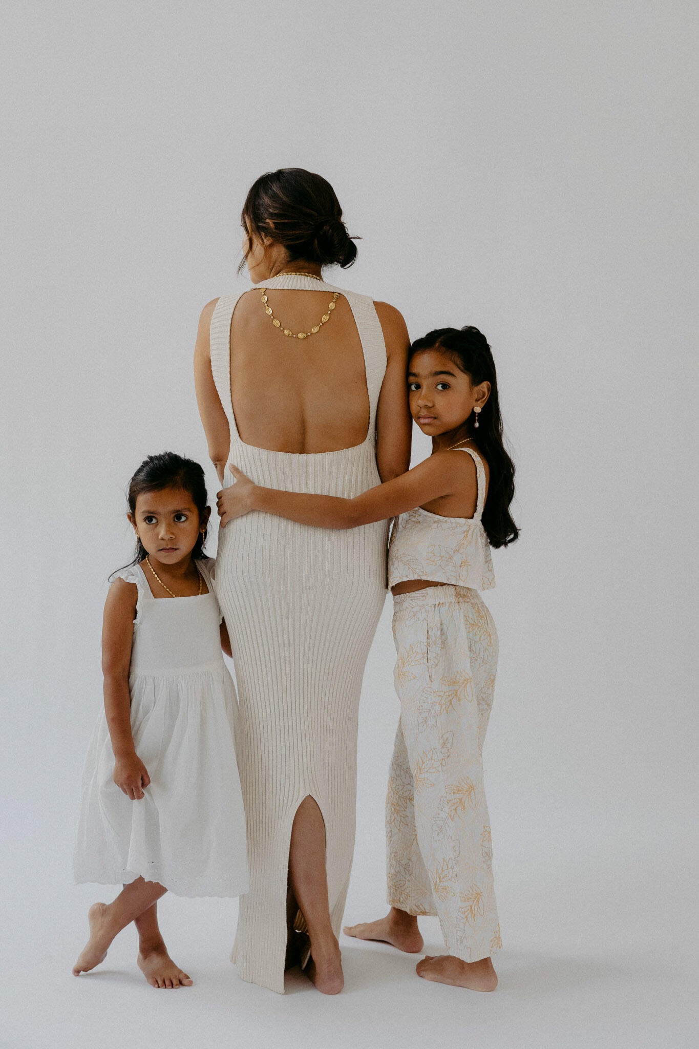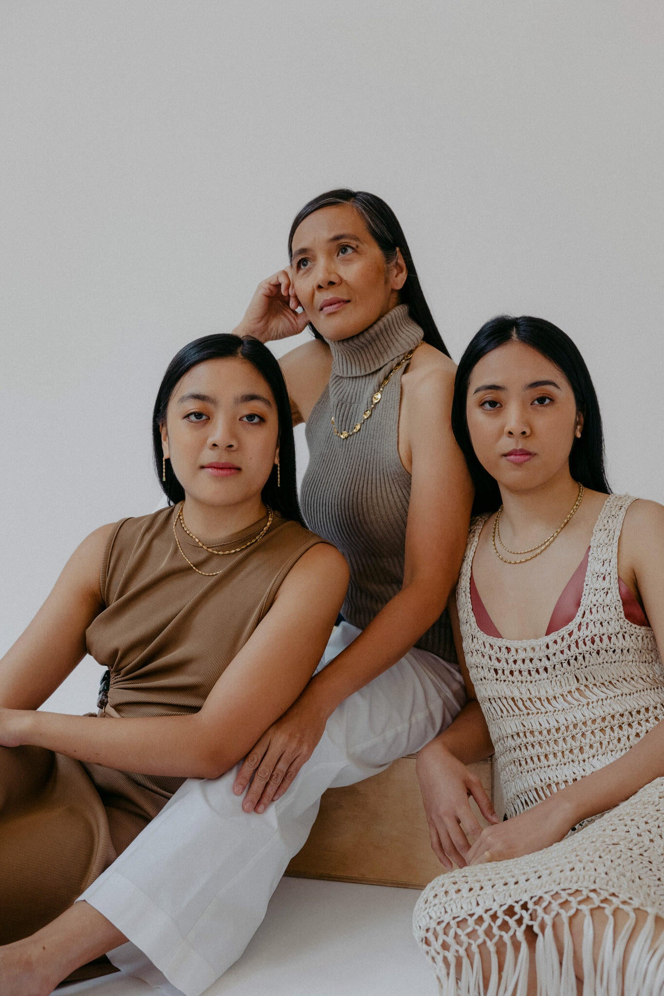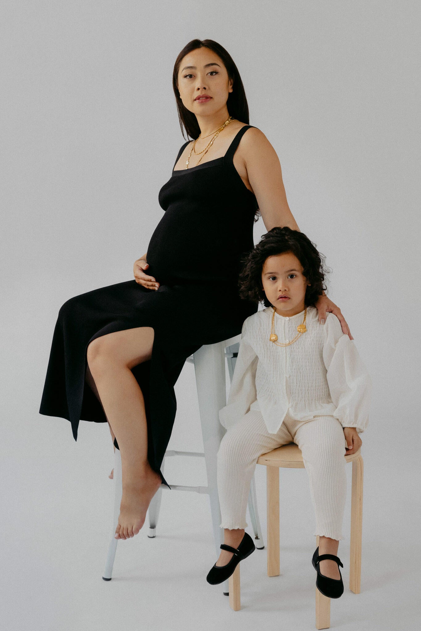 The "Mother Chain" motif finds its origin in a heartfelt tale of self-celebration and intergenerational connection. Modeled after a gold chain Rachel's mother acquired during her pregnancy, this exquisite motif embodies a profound narrative. Rachel's mother, just days away from her due date, stumbled upon a traditional jewelry store in China. Compelled by an inner desire to give a gift to herself, she bought herself this unique gold chain. She felt empowered, this was not a gift from her husband or her father, but to herself, symbolizing her transformation into motherhood.