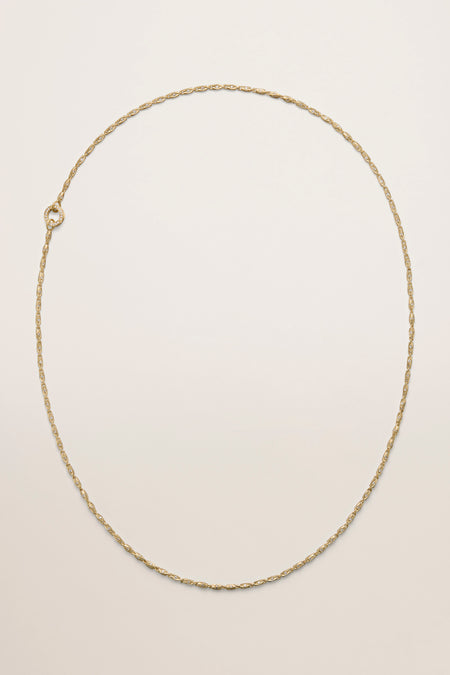 Small Mother Chain Necklace, 18k Yellow Gold, Matte Finish, Diamond Center