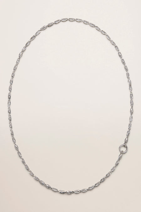 Medium Mother Chain Necklace, 18k White Gold, High Shine Finish, Diamond Center