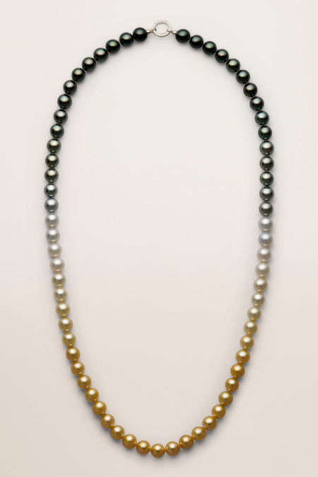 Pearl Strand Bracelet with Golden and Grey Ombre Akoya Pearls, 18k White Gold, High Shine Finish Closure with Pave Diamonds, Shikisai Certification Included